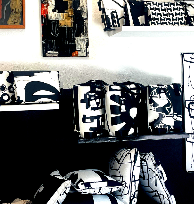 Inside her new GALERÍA VDW, those brushstrokes have evolved into an entirely new world — translated into bold, playful collections of accessories, totes, homewares, ponchos, lighting + handwoven rugs. Every piece is infused with her unmistakable energy where the color black fearlessly takes center stage.